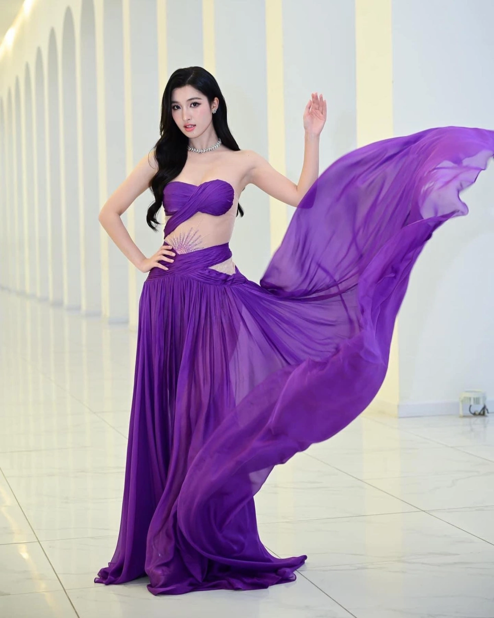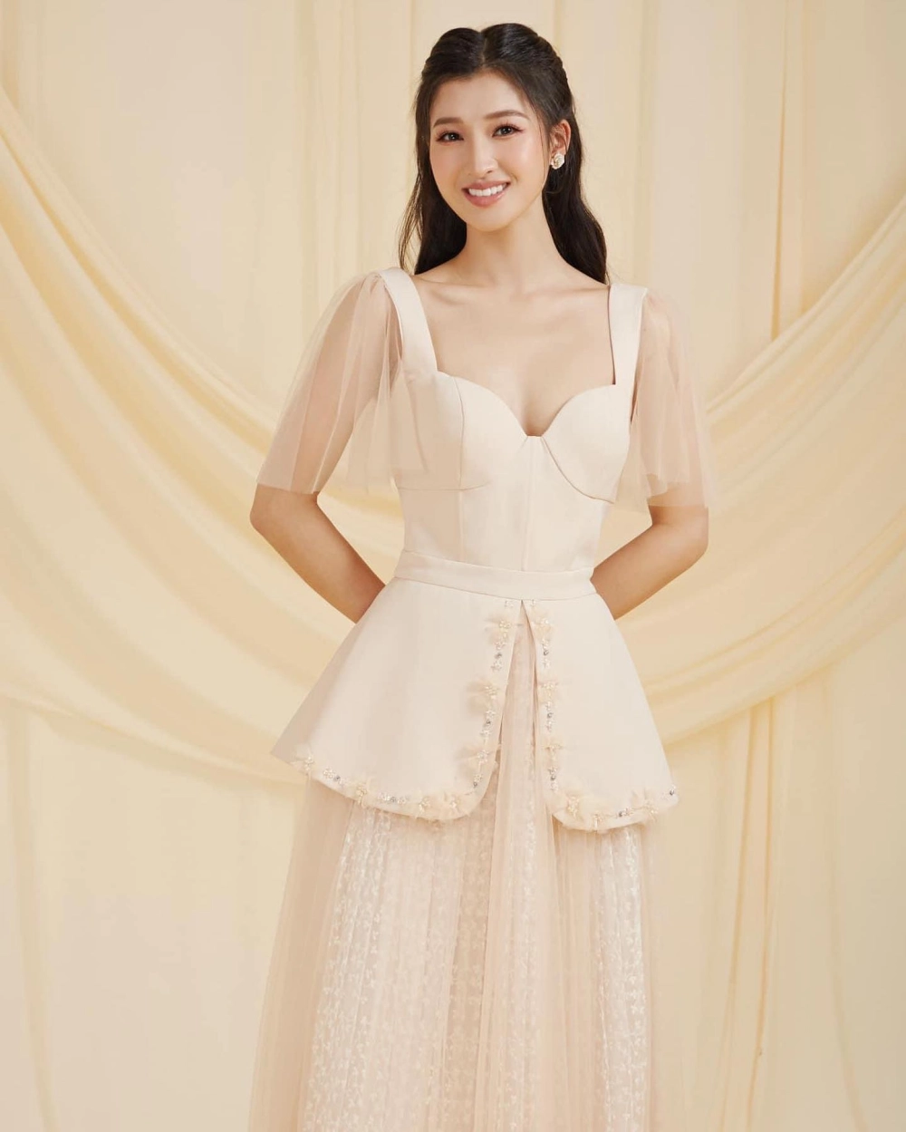 Hình ảnh của Á hậu Phương Nhi luôn toát lên vẻ đẹp nhẹ nhàng, được ví như “thần tiên tỷ tỷ” nhờ gương mặt thanh tú và nụ cười rạng rỡ. Cô thường xuất hiện trong các bộ váy áo nữ tính, từ áo dài truyền thống đính đá Swarovski trong lễ ăn hỏi đến váy pastel gợi cảm tại tiệc cưới anh trai.
